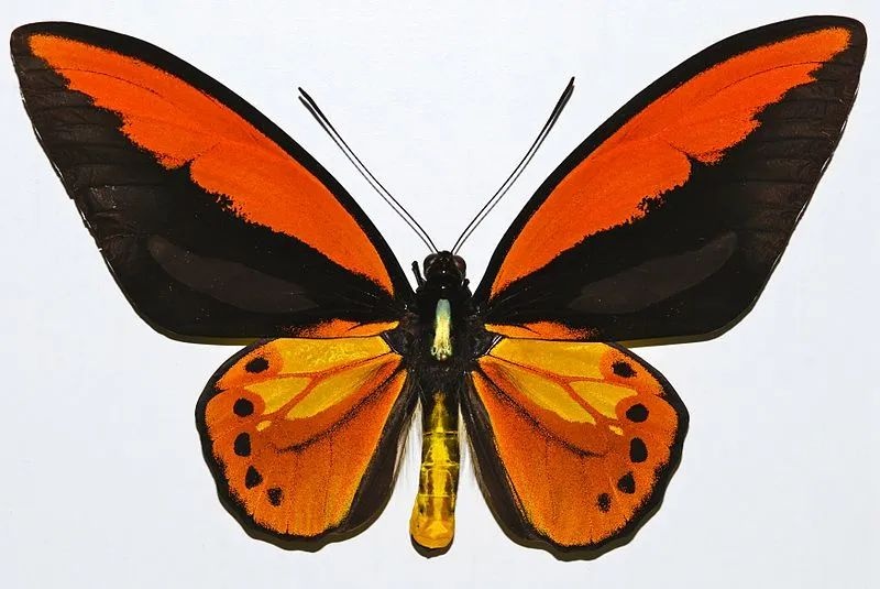 我小时候最喜欢去的两个地方,一个是家附近的动物园,另一个则是稍远一些的博物馆,而每次去博物馆,我驻足时间最长的就是昆虫展区,记得当时有一面墙展出了很多色彩艳丽的大蝴蝶,标牌上写着这些是鸟翼蝶属,包含了世界最大的蝴蝶种类,令当时年少的我印象极为深刻。