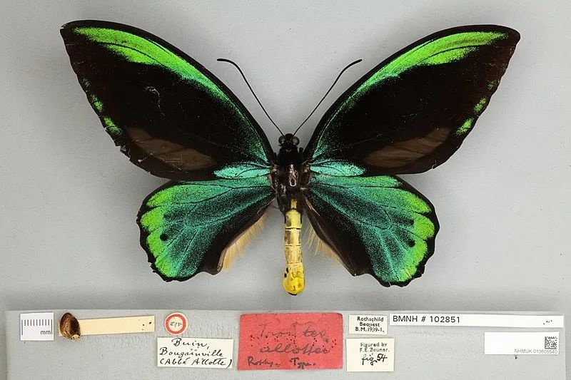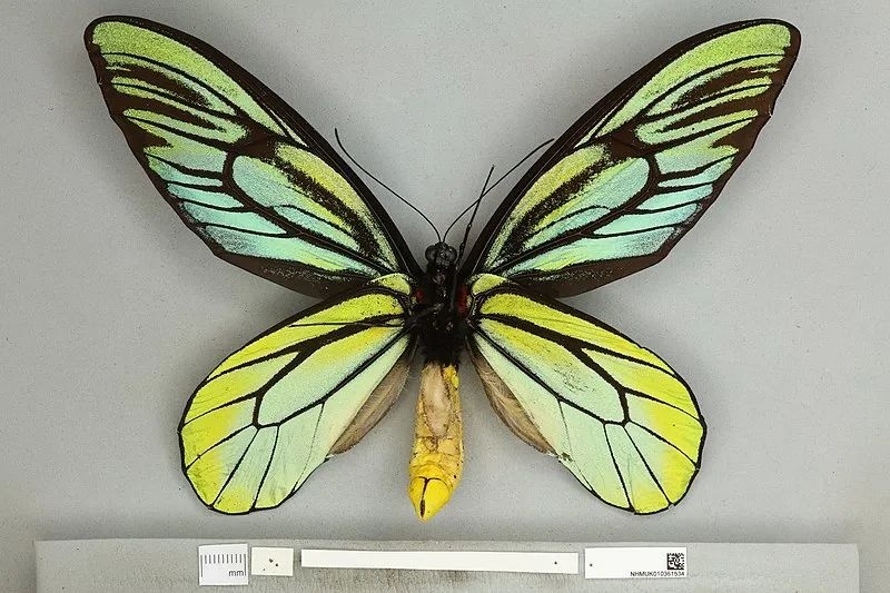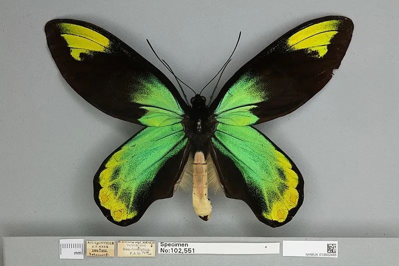 伦敦自然博物馆的亚历山大鸟翼凤蝶,雄性