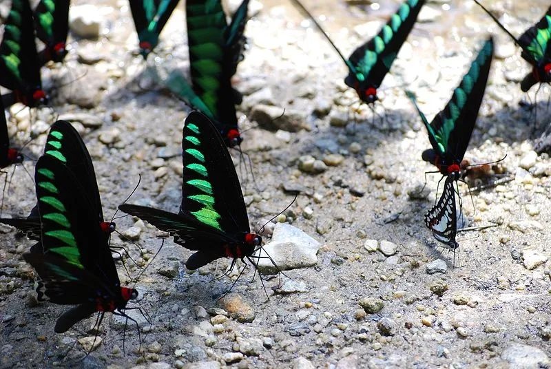 由于其巨大的体型和耀眼的色彩,在蝴蝶收藏家眼中,鸟翼凤蝶是炙手可热的珍贵种类,价格不菲。相比固定于精致标本盒中的美丽蝴蝶尸体,我相信绝大部分人和我一样,若是有机会,宁愿在热带岛屿的雨林中,一睹这些硕大优雅的蝴蝶滑翔穿过高树顶端,可望而不可及的身影。